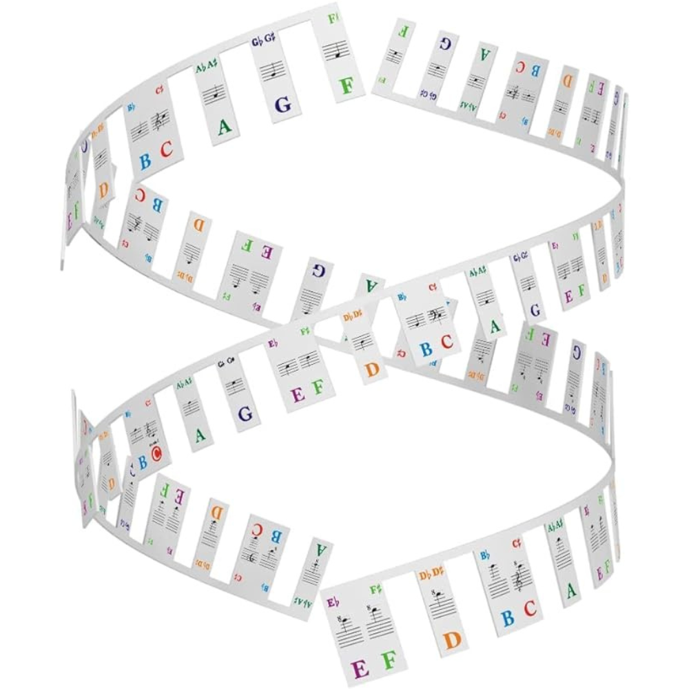 I bought this in the past year to make playing the piano accessible to clients who don’t know how to read music - and it has certainly made facilitating this so much easier on my end! No more taping tiny labels on each key or putting stickers on just to take them off again for another client. These labels lay right on top of the keys, are color coded for adapted music, are portable, and can be cut to whatever size you need!